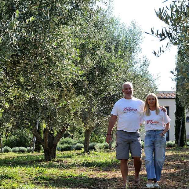 We were introduced to Sant Angelica by local friends. It is a small farm of 900 olive trees and a house which we have lovingly restored. Bringing Sant Angelica back to life and embracing the unique coastal environment that infuses our olives with a rich, distinctive flavour has been a labour of love. This process has been about more than producing olive oil; it has been about embracing a life in harmony with nature, where each day is shaped by the earth and the sea.